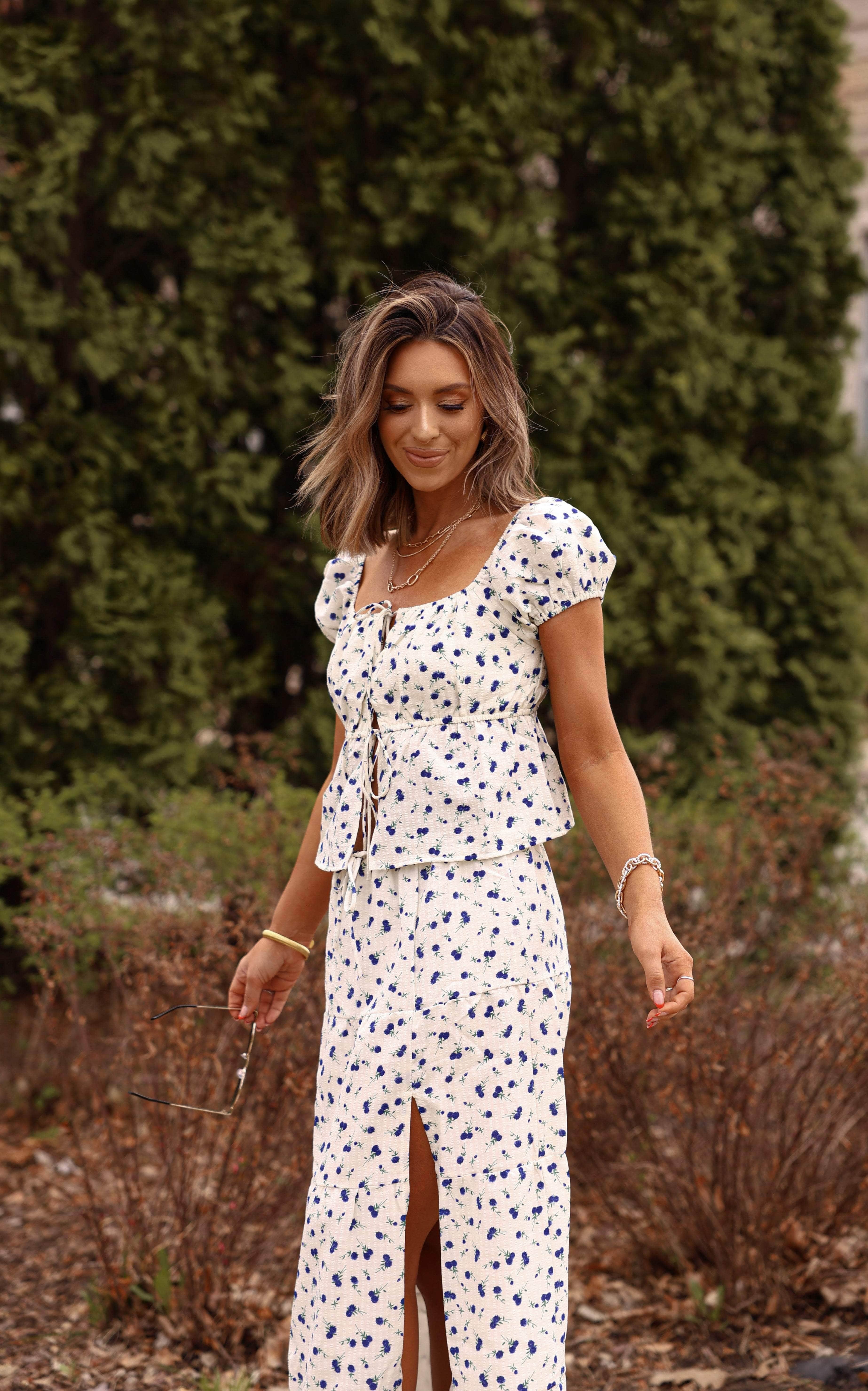 Indulge in the beauty of nature with our In The Garden Top. Off the shoulder design, adjustable drawstring details, and delicate puff sleeves create a sweet and dainty look perfect for spring and summer. Front tie adds a touch of elegance, making it the perfect choice for brunch dates or garden parties. Cropped fit adds a trendy touch.