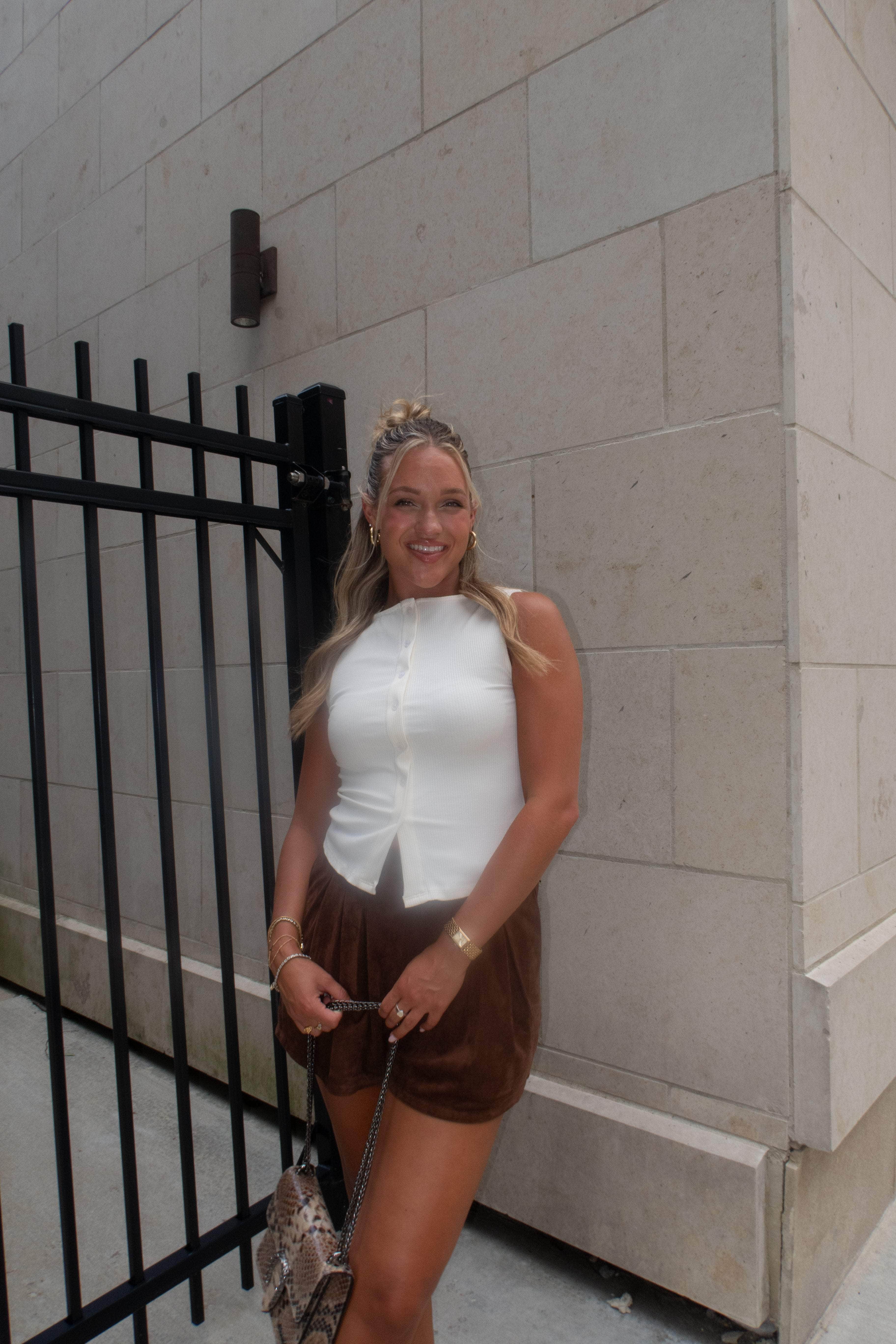 This versatile staple is crafted from soft ribbed material and features a chic high neck with button details all down the front. It’s the perfect piece to dress up or keep casual, adding effortless style to any outfit.