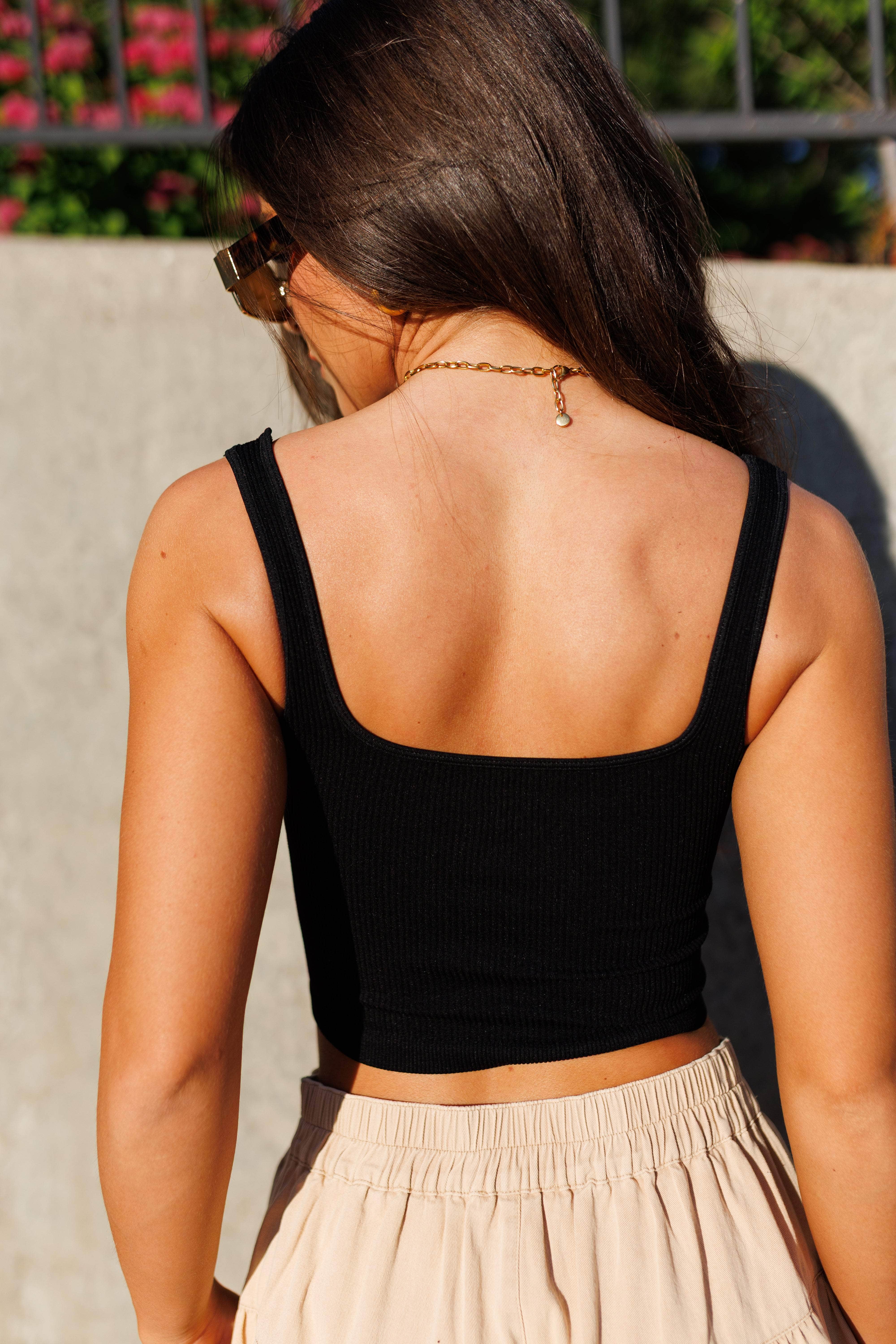Build your wardrobe with Lane 201's Allie Tank! This tank features a super soft and stretchy ribbed knit material, a square neckline, and a cropped fit. A must-have basic that you need in your wardrobe year round. This piece is perfect for dressing up or down and is great for layering!