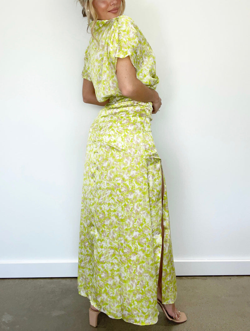 Experience the beauty of the season with our Euro Summer Skirt. Crafted with a luxurious satin and featuring a vibrant floral print, this maxi-fit skirt will have you feeling both elevated and fresh. The stretchy elastic waistband and back zipper closure offer a comfortable fit, while the side slit detail adds a unique statement. Show off your style this spring and summer with this gorgeous piece.