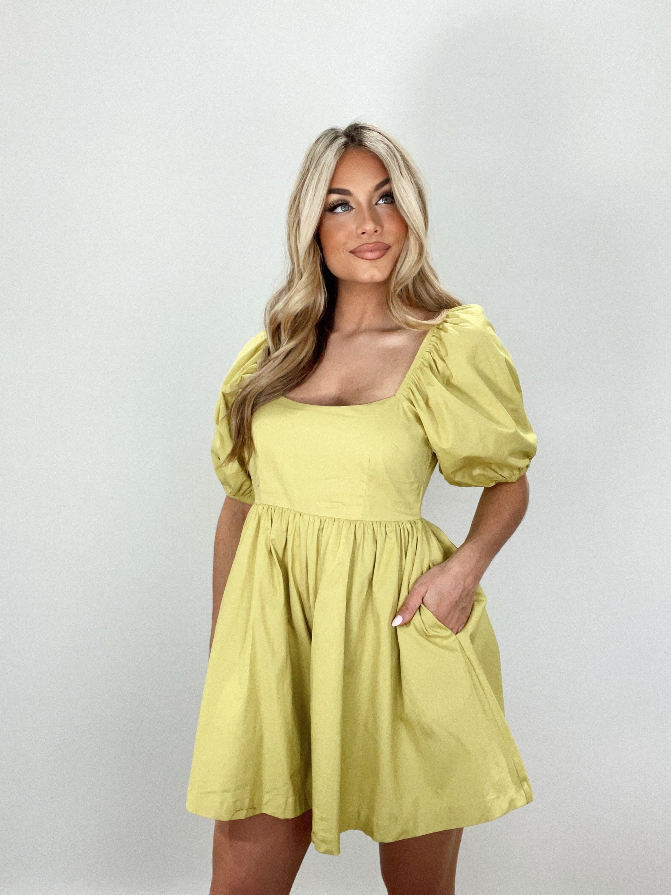 Hit the town with your sassiest look yet in the Lime Babydoll Romper! With its puff sleeves and strappy back, this romper is sure to turn heads. Its elastic waistband and inner lining will keep you comfortable all day, while its flattering and flirty silhouette will make you feel your best. A one-stop shop for cuteness!
