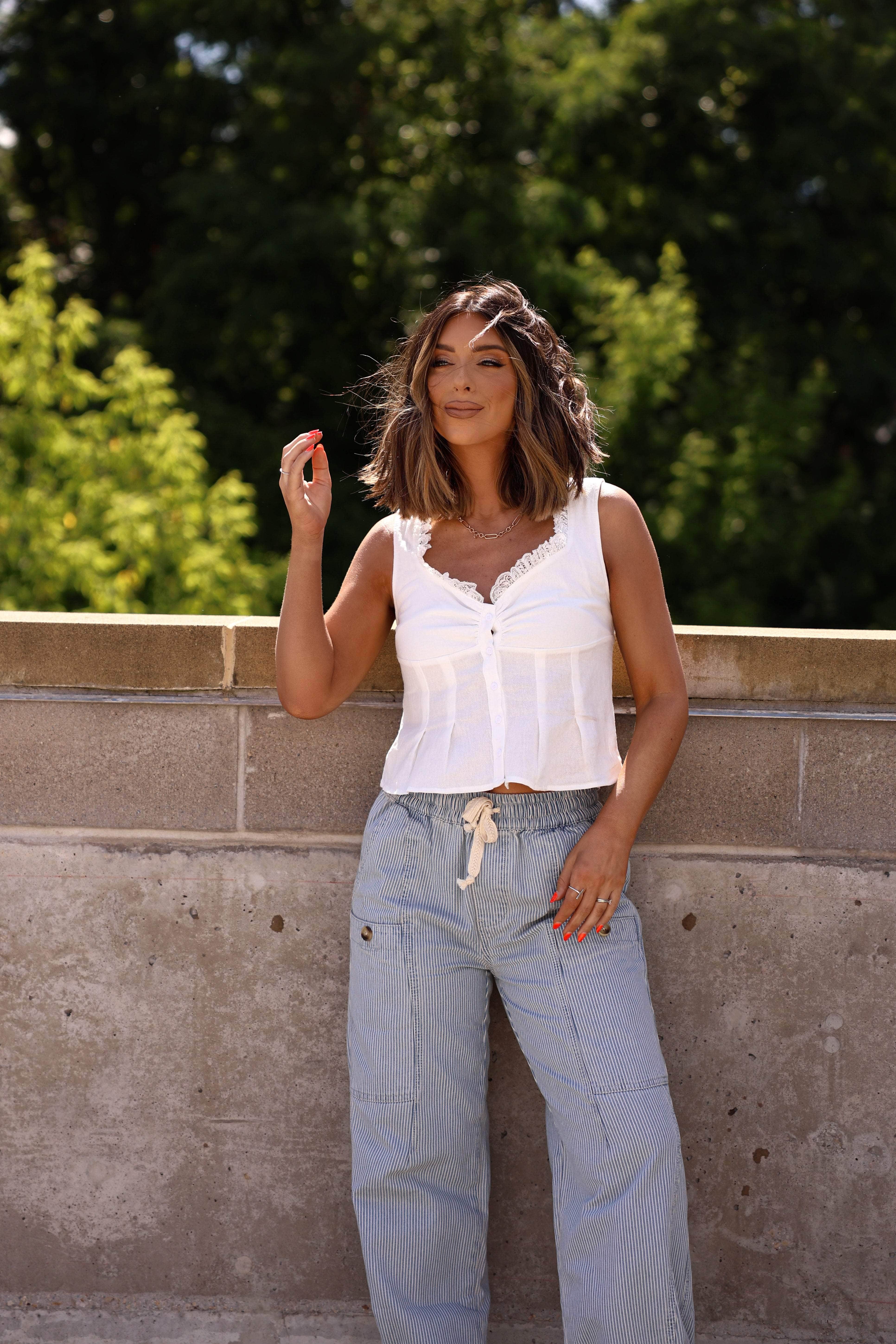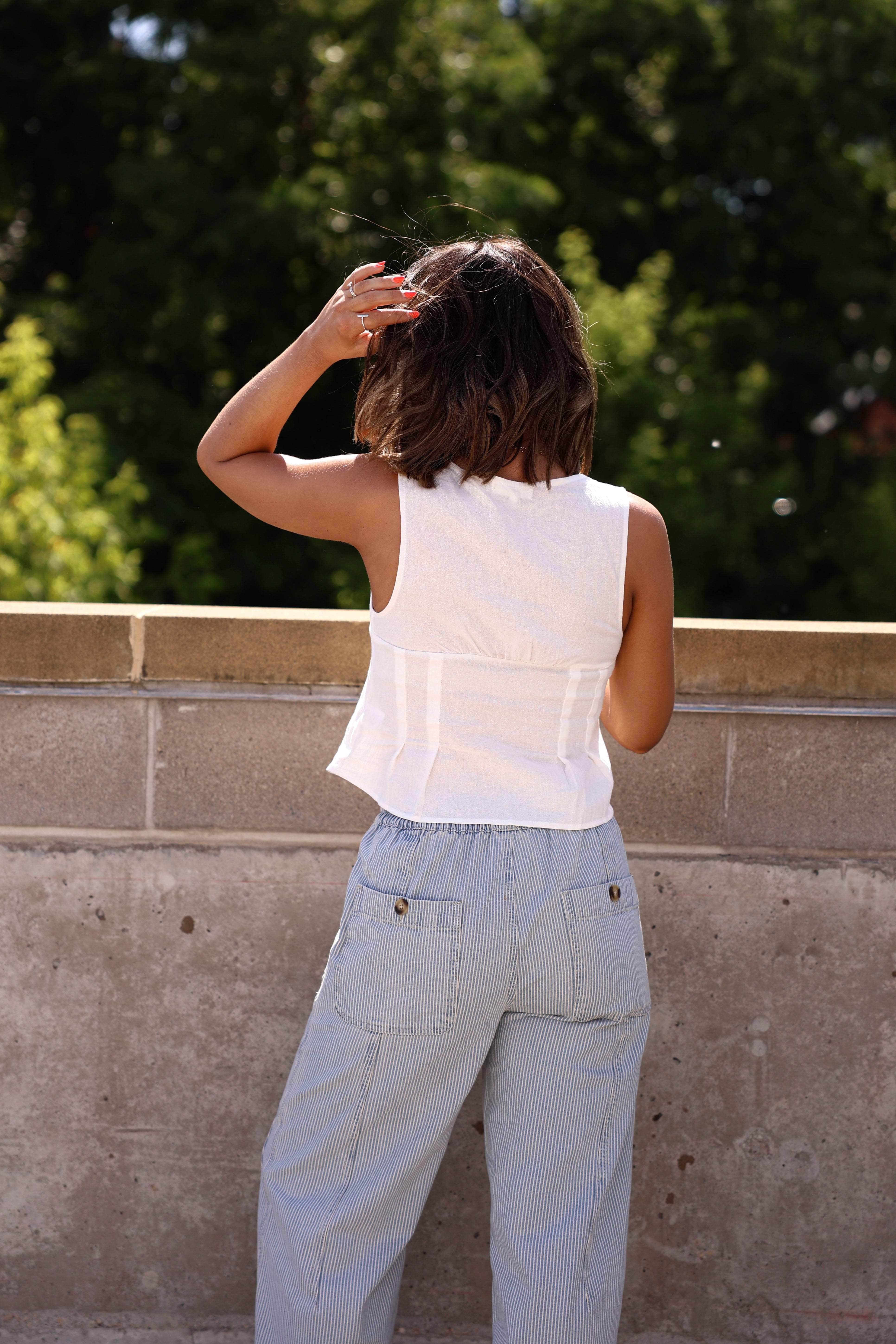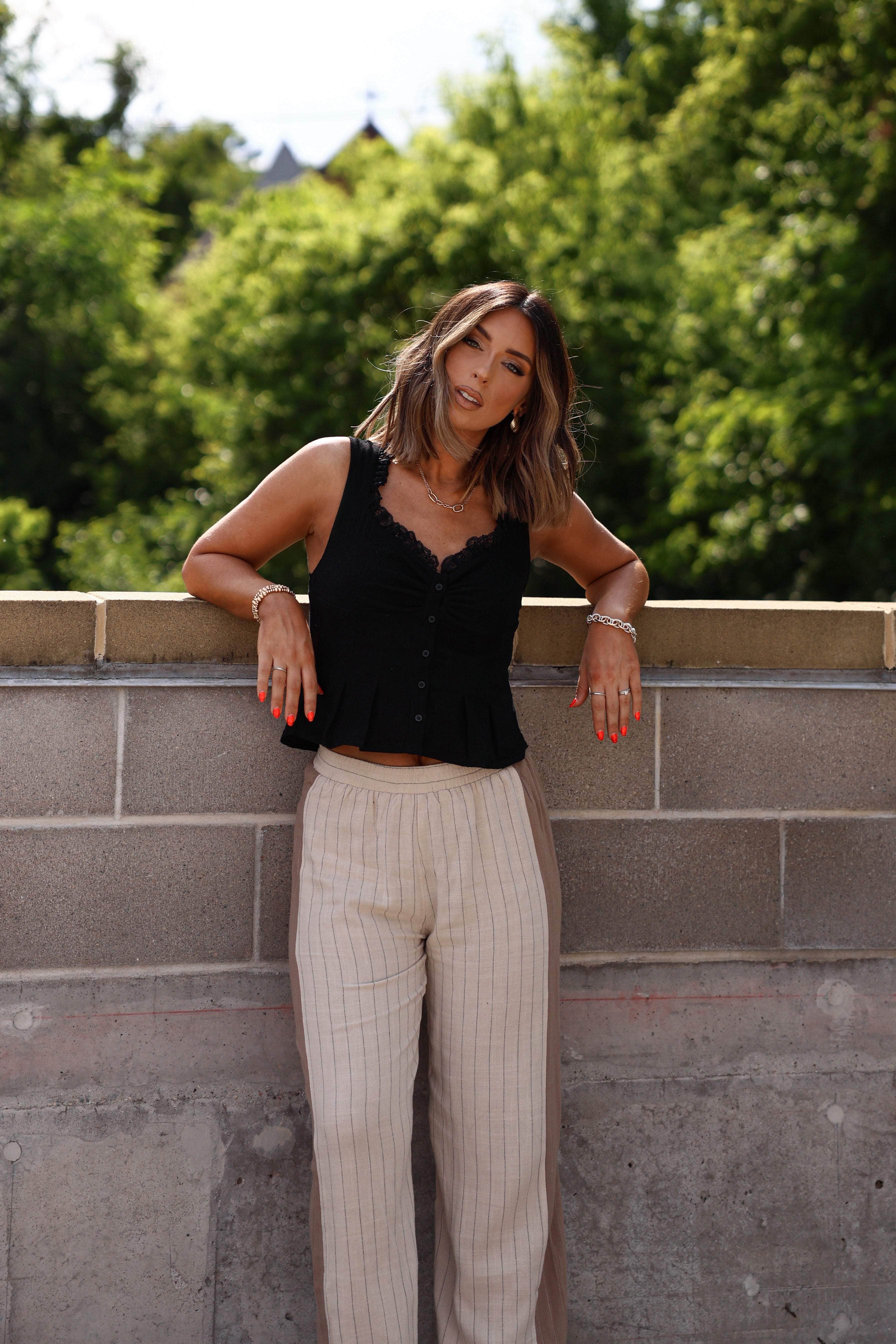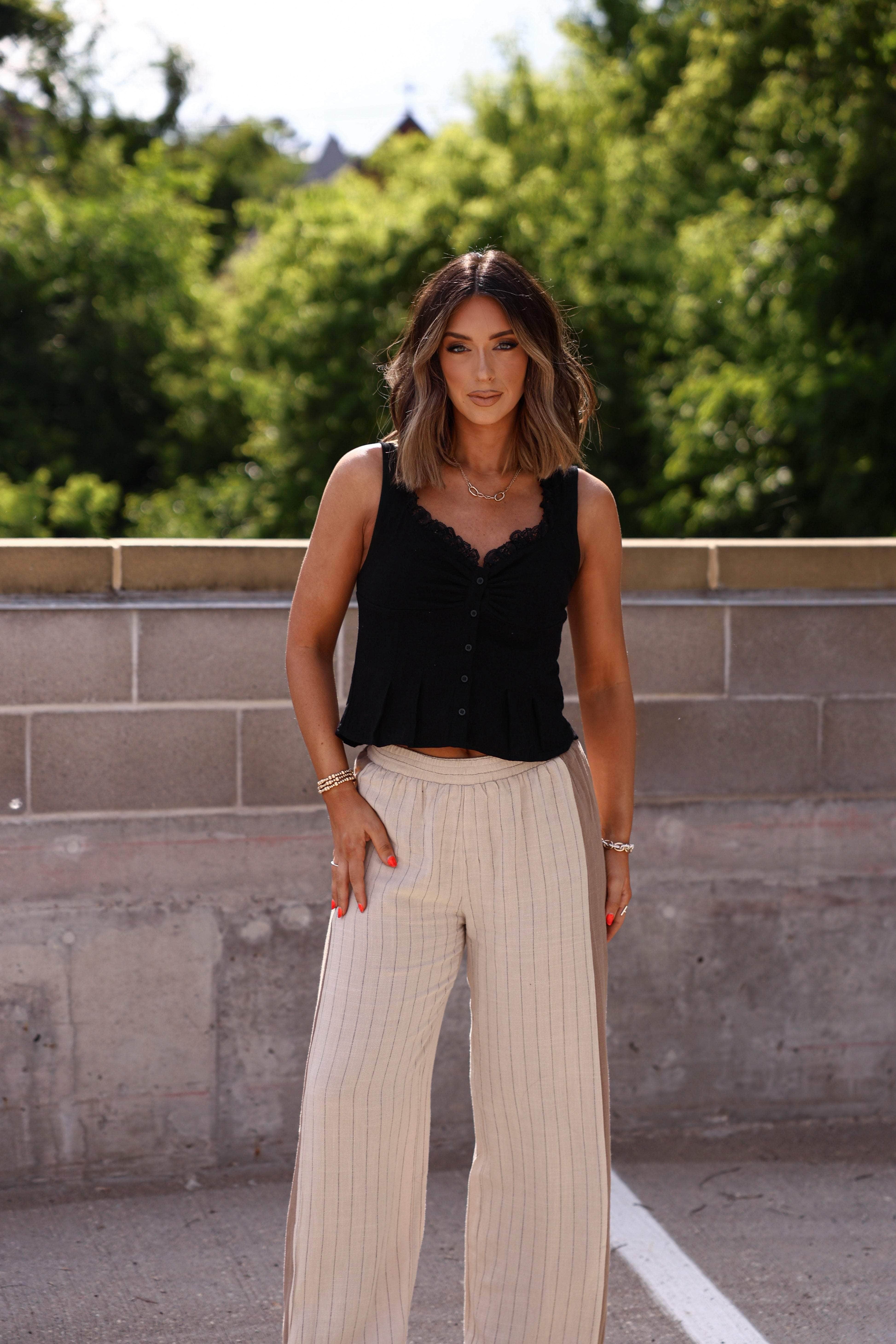 Linen Lace Pleated Tank