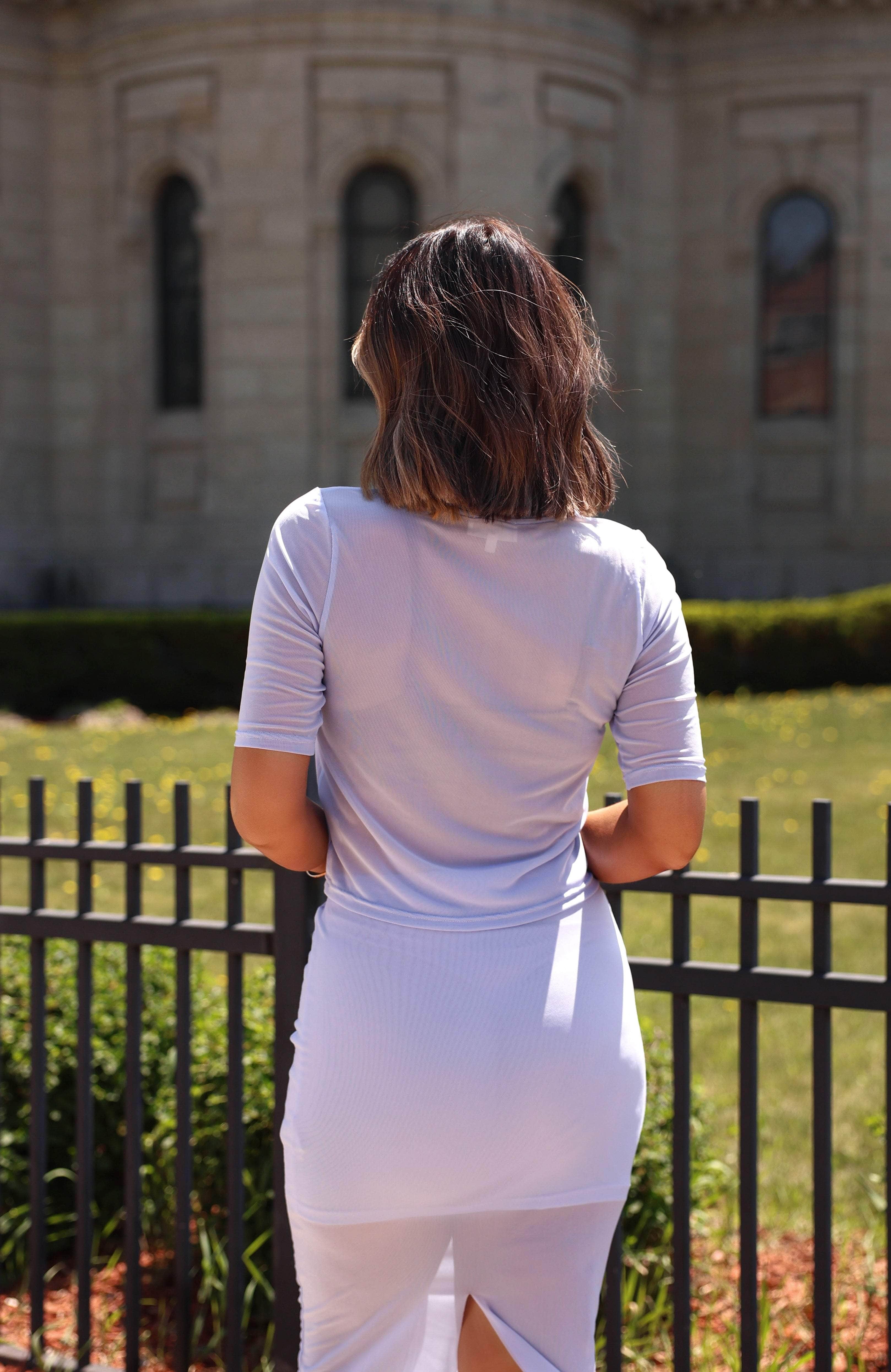 Indulge in a moment of luxury with our Mesh Moment Top. Its soft and stretchy sheer mesh fabric hugs your curves and adds an edgy touch to your style. With a rounded neckline and short sleeves, this cropped top is perfect for a dinner date, drinks with friends, or a concert. Elevate your wardrobe with this trendy piece.