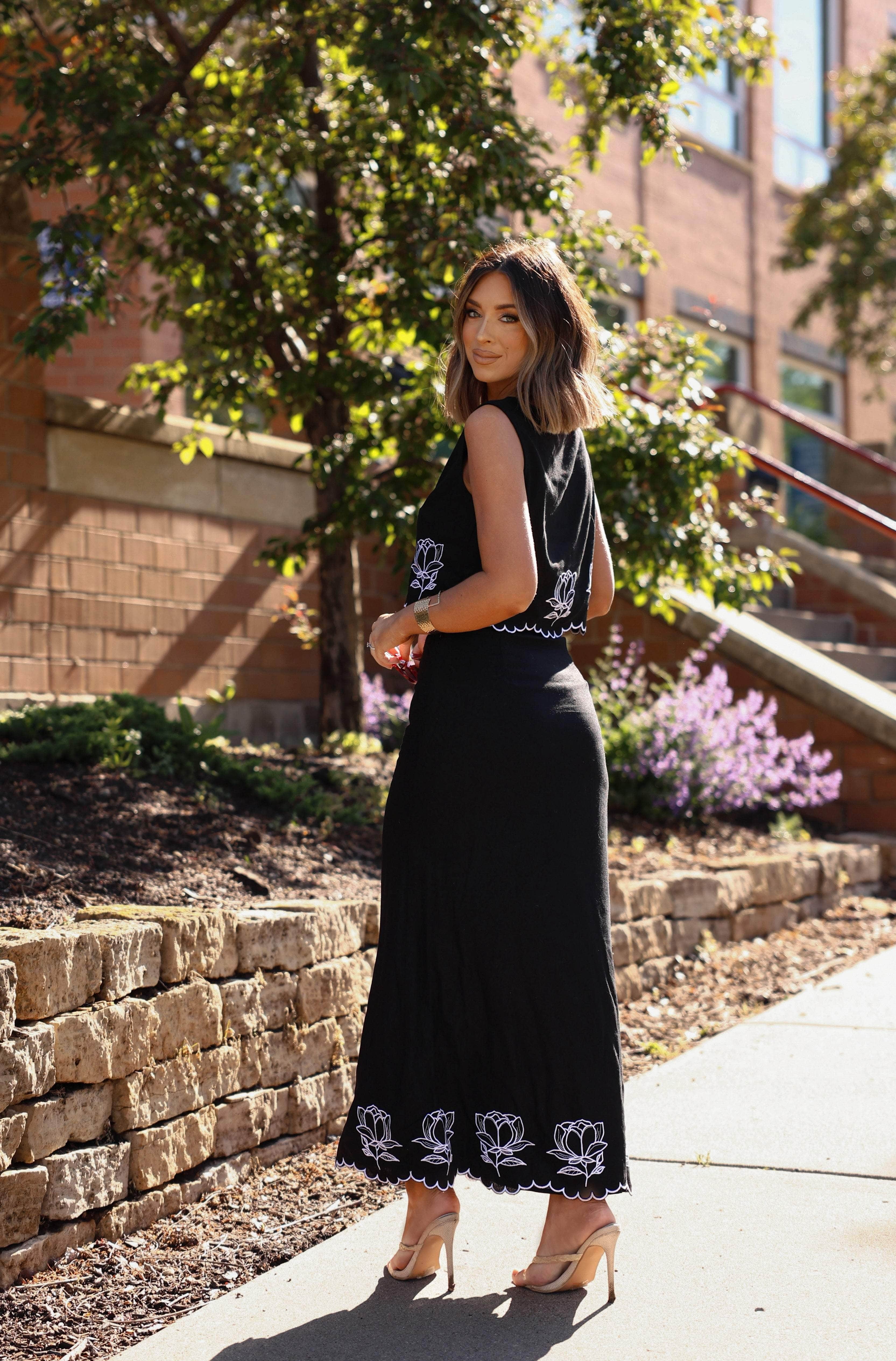 Graceful and refined, the Petal Lines Skirt features a scalloped hem adorned with delicate embroidered floral designs for a romantic finish. Fully lined for comfort and coverage, this lightweight maxi skirt includes a hidden side zipper with a hook-and-eye closure for a seamless fit. Designed to pair perfectly with the matching Petal Lines Top, it’s a dreamy set ideal for warm days, special events, or effortless everyday elegance.