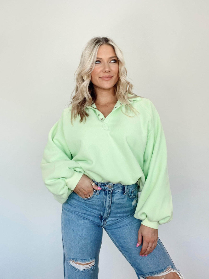 Feel fresh, light and trendy in this Chill Pullover. It has snap closures, a collared neckline, and balloon sleeves for the perfect relaxed fit. Soft fleece lining will keep you comfy during spring and summer days! Show off your style in this pullover - it's the ultimate in convenience and comfort!