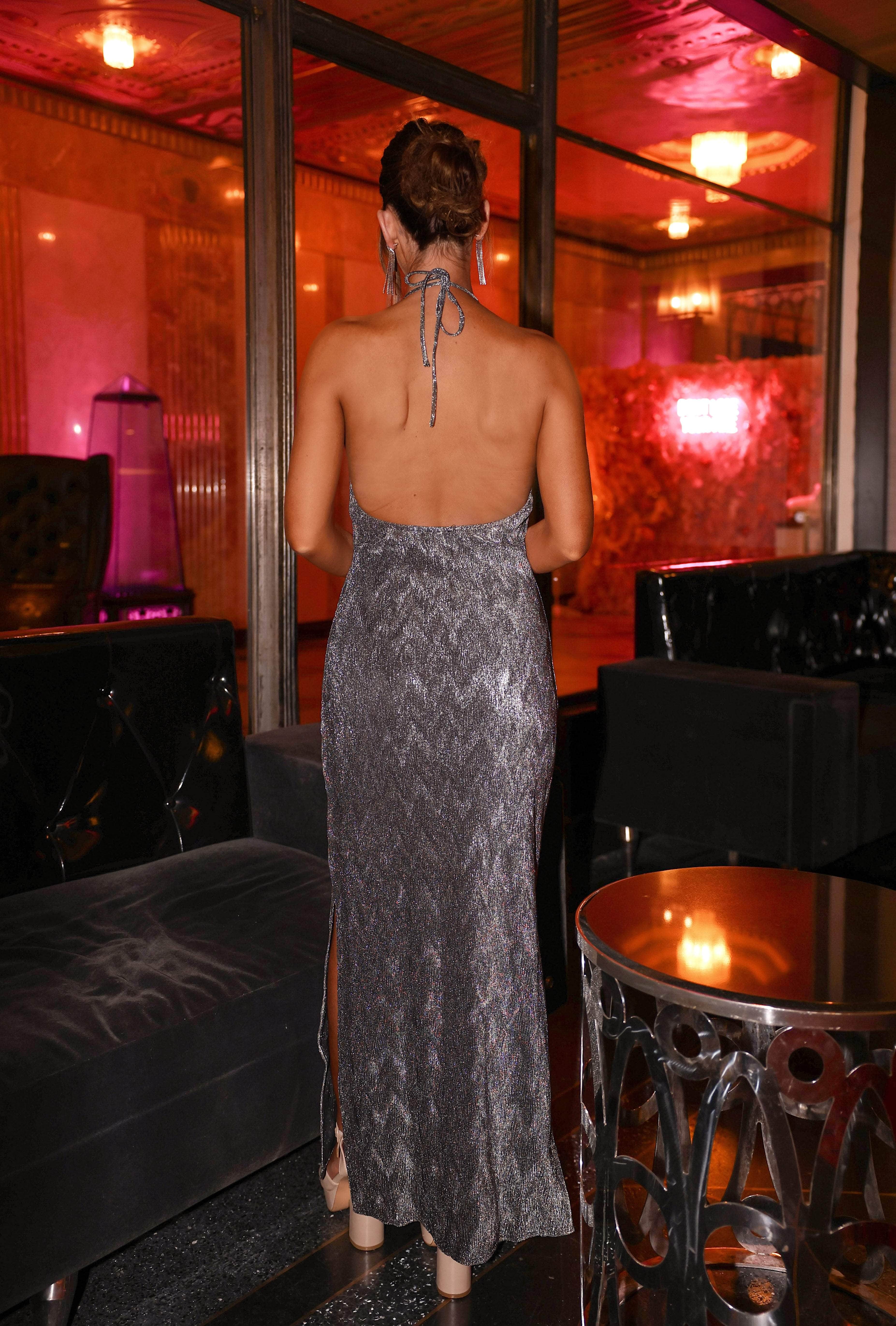 Crafted with a tie halter neck and shimmering sequins, this Queens Glitter Dress is a perfect choice for your most elevated occasions. Featuring a sparkling glitter fabric and a maxi fit with a side slit detail and open back detail, it exudes sophistication and class. Soft and stretchy for comfort, it's perfect for weddings, galas, Christmas parties, dinners, and drinks. Make a statement with this elegant and timeless dress.