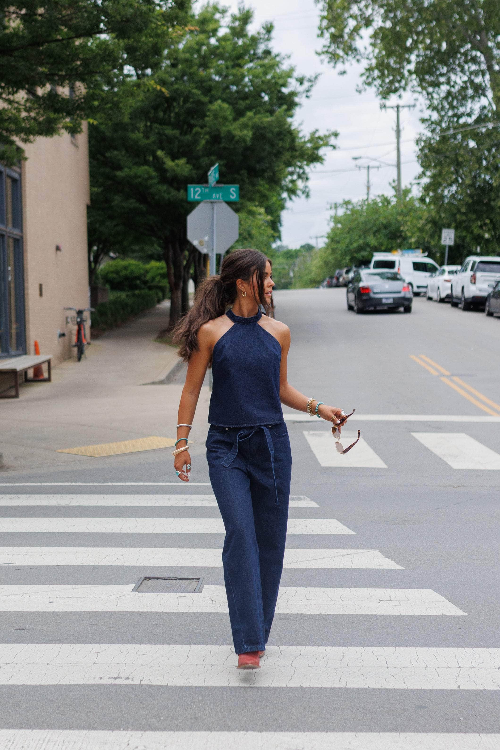 Elevate your casual wardrobe with these ultra-comfortable Rooftop Runway Denim pants. Featuring a trendy loose baggy fit crafted from 100% cotton, these versatile bottoms include practical details like front double pockets, back pockets with durable rivets, and a classic fly zipper with button closure. The included denim tie belt adds styling versatility—perfect when paired with the matching denim top for an on-trend coordinated look.
