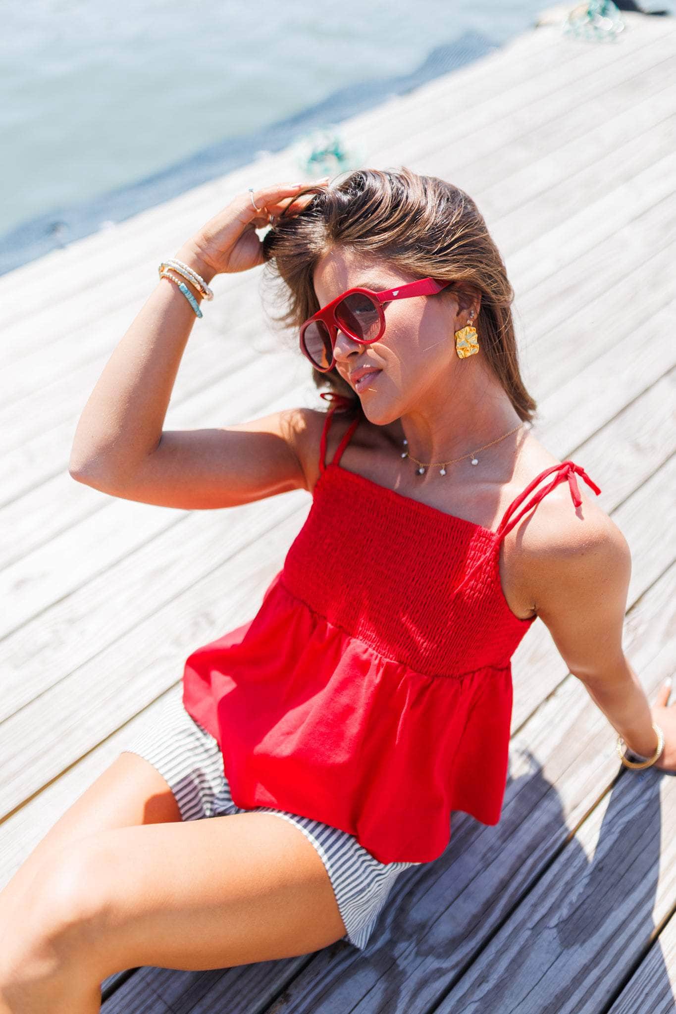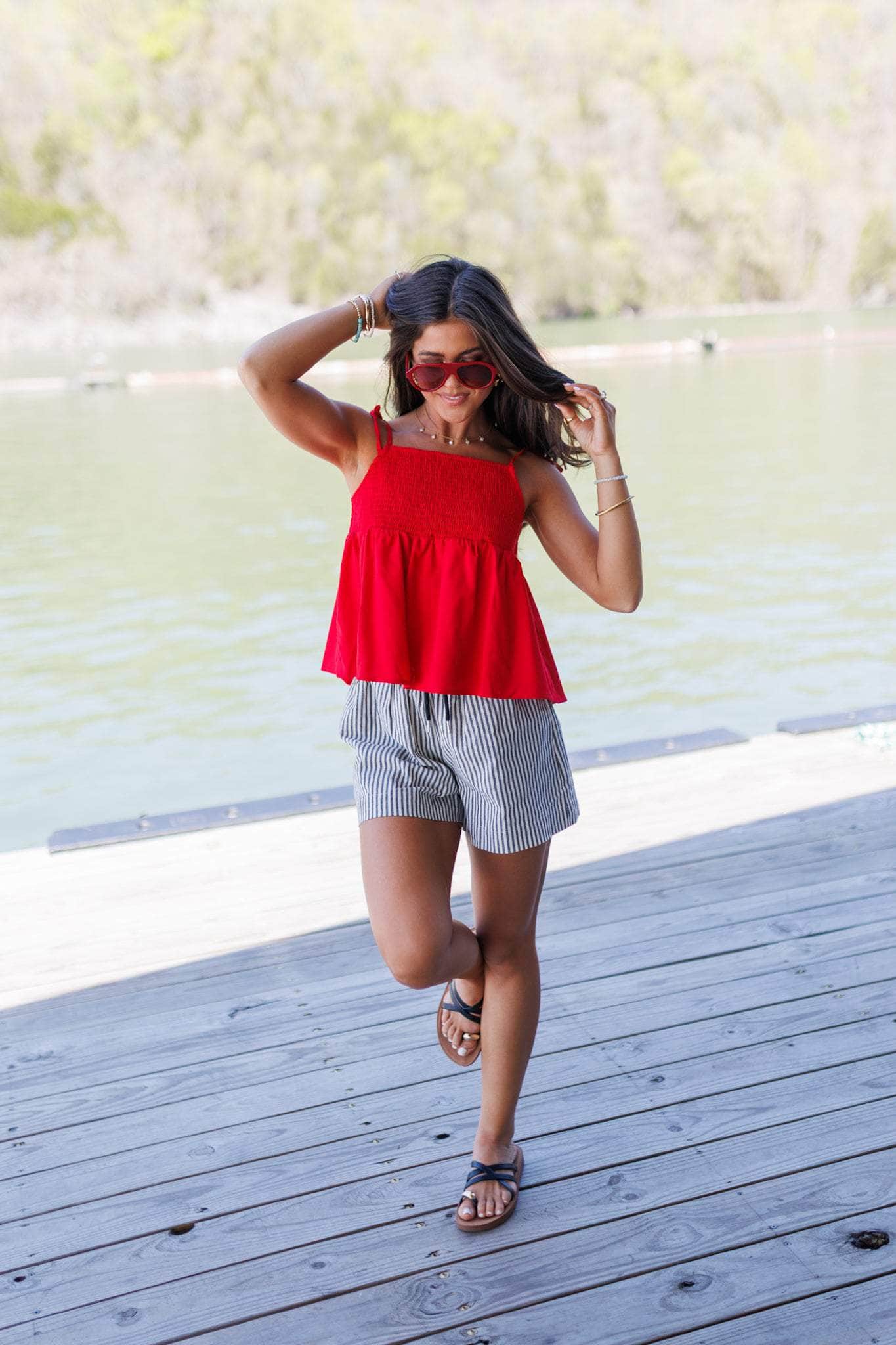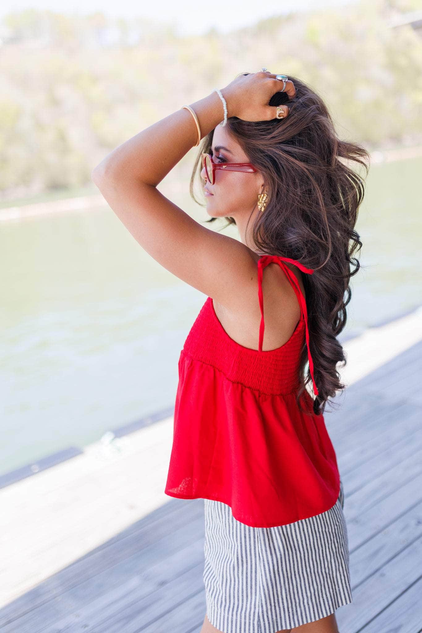 The Small Town Summer Tank combines fashion and function with its smocked design, adjustable bow straps, and square neckline. Made from a stretchy cotton blend, this tank is both comfortable and stylish. The tank is fully lined for added support and durability. Perfect for any occasion, this tank is a must-have for any wardrobe.