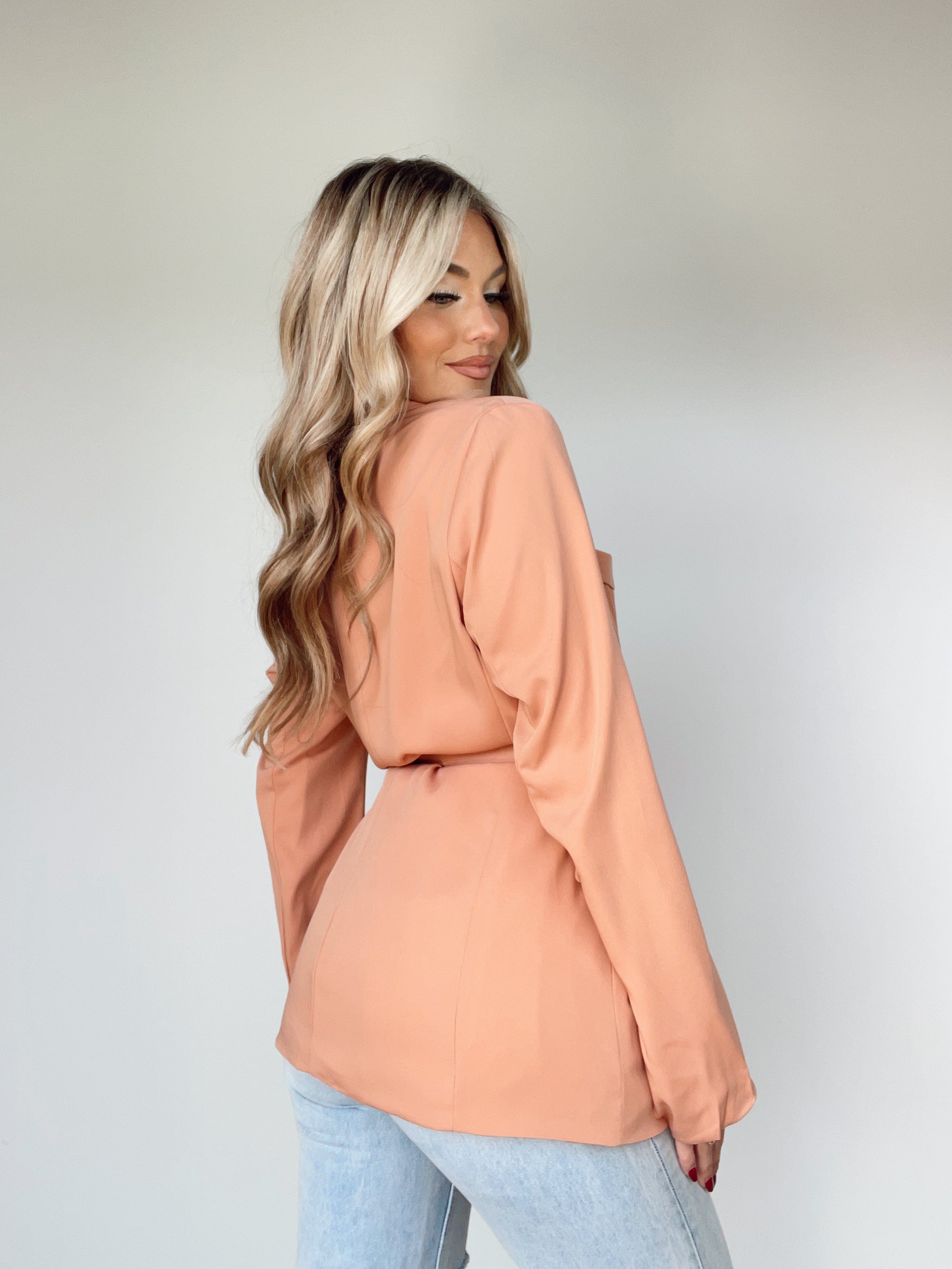 Make a statement in the So Posh Blazer. Designed with a collared neckline, waistbelt detail, and pocket details, this unique blazer features a V neckline, fitted form, and luxurious feel for a look that is both sweet and sophisticated. Perfect for dinner, drinks, work, or just a pop of color in your wardrobe, the So Posh Blazer is a stylishly elevated, soft, and comfortable transition piece that is sure to be chic and versatile.