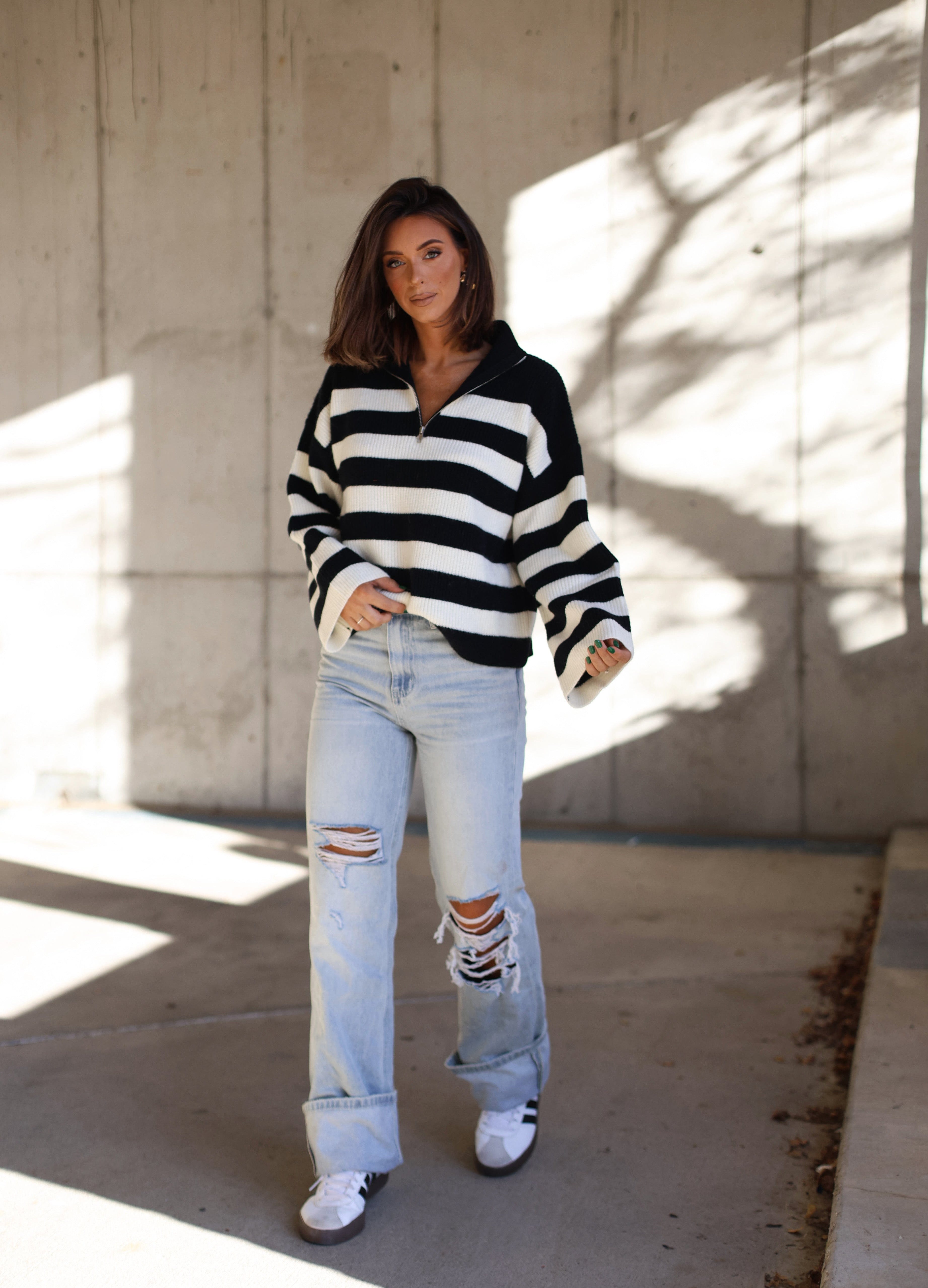 This Timeless Cozy Sweater offers a classic striped design with a zip-up front and wide, long sleeves, providing both style and convenience. The loose fit ensures all-day comfort, making it perfect for any occasion. Elevate your wardrobe with this versatile and timeless sweater.